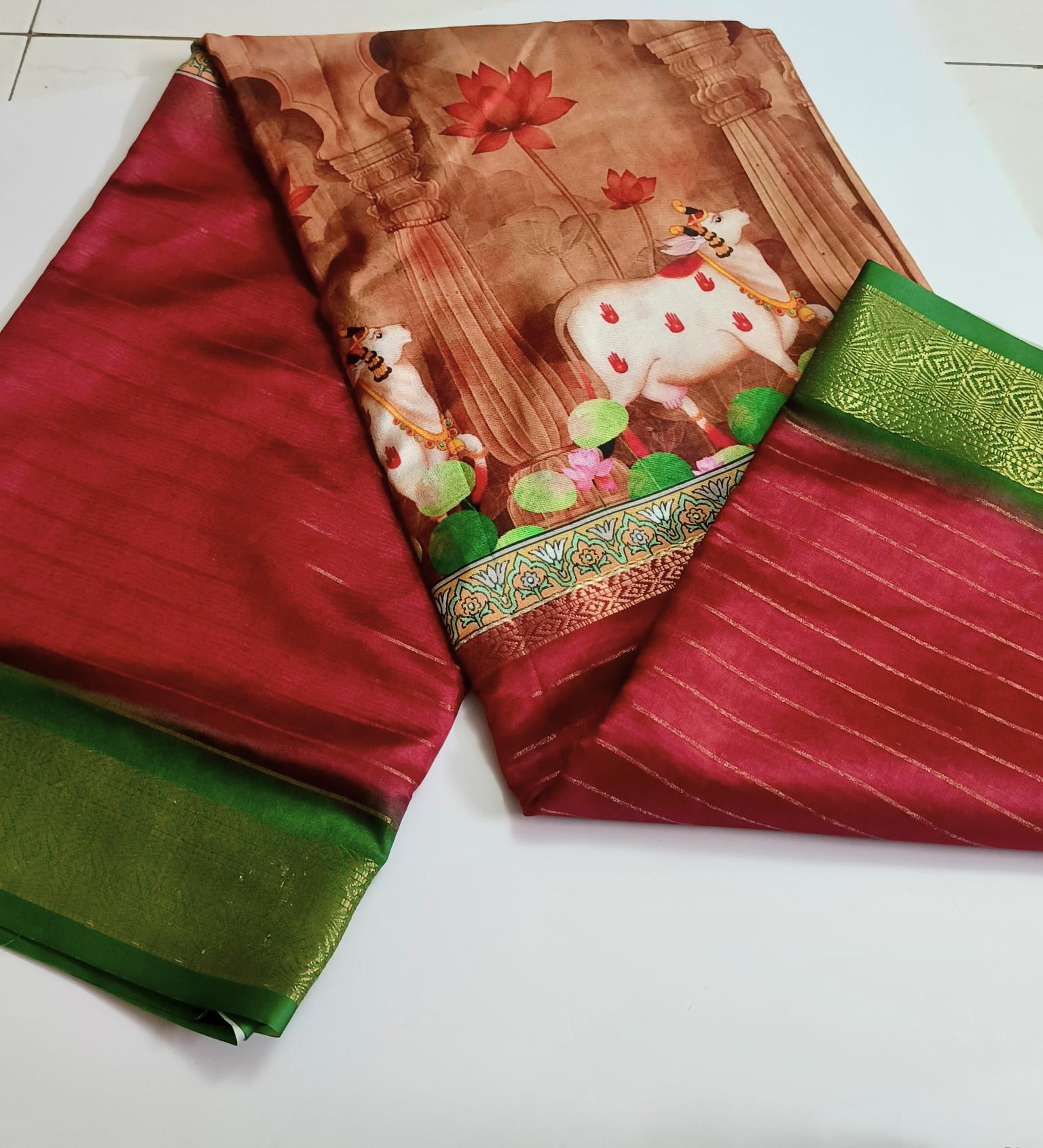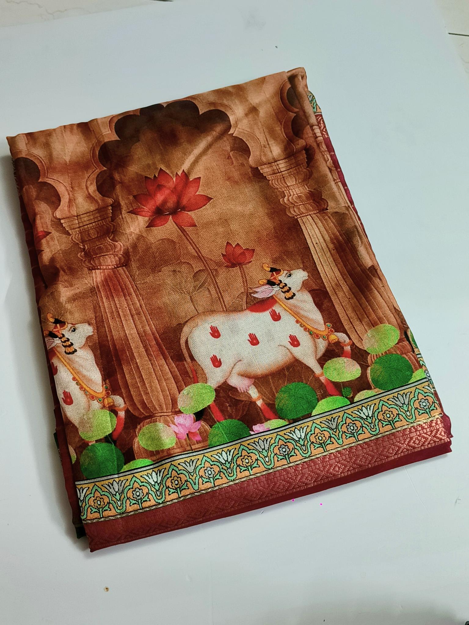 Digital Print- Fancy Saree - Brick Red