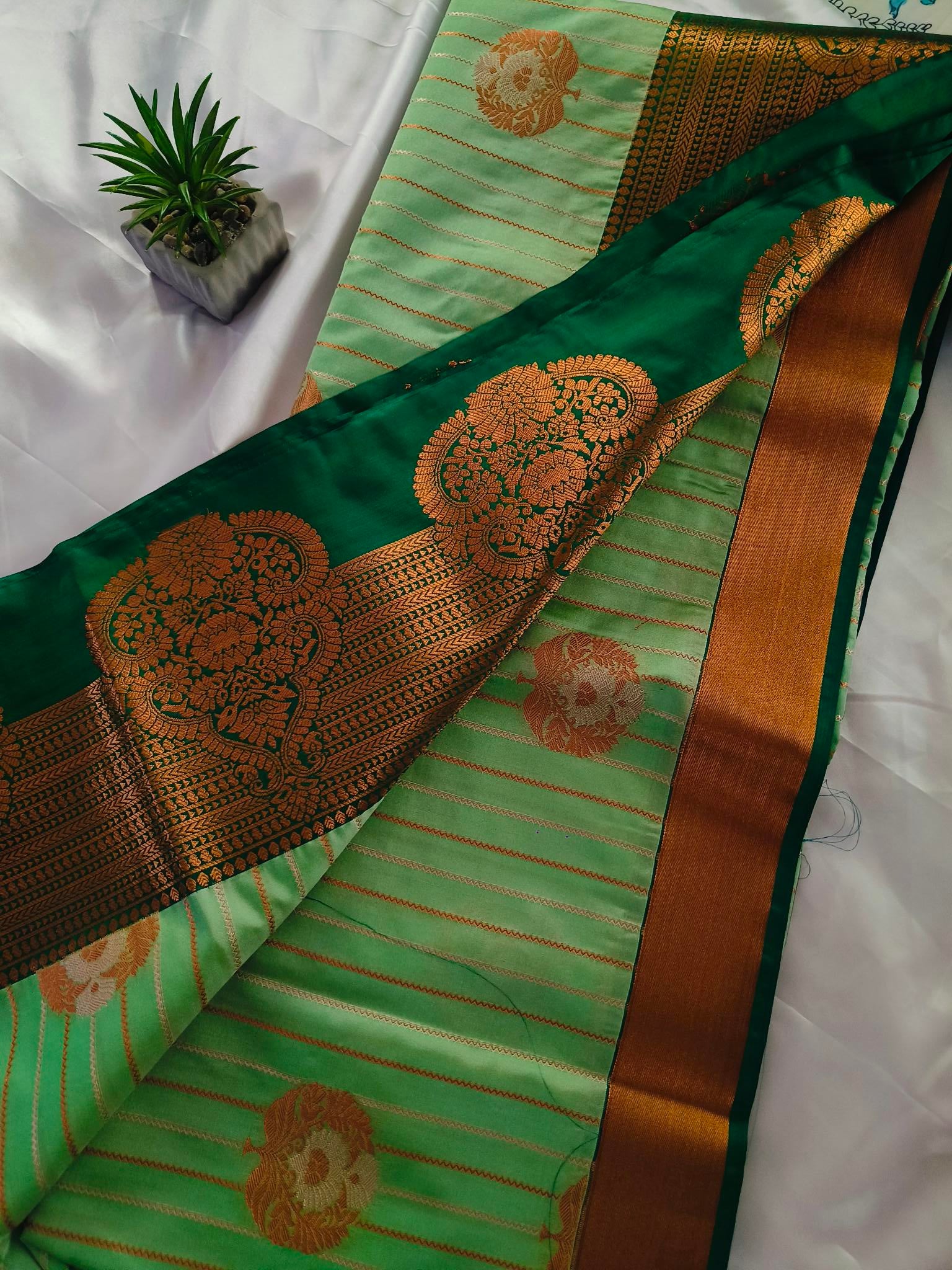 Raspberry Lines Green Semi Silk Saree